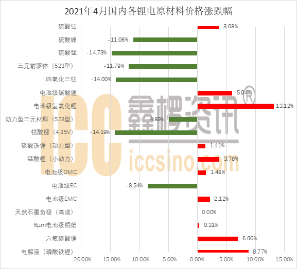 According to the China Automotive Power Battery Industry Innovation Alliance: in April 2021, China's power battery installed capacity totaled 8.4GWh, up by 134.0% yoy. NCM batteries, LFP batteries installed capacity are respectively 5.2GWh and 3.2GWh, up by 97.3% and 244.5% yoy.