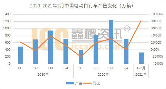 According to data from the Ministry of Industry and Information Technology (MIIT), in January-February 2021, the domestic production of e-bikes was completed at 3.185 million units, up by 81.7% yoy.