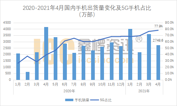3C Digital | Domestic cell phone shipments of 27.486 million units in April, with 5G accounting for 77.9% of total shipments