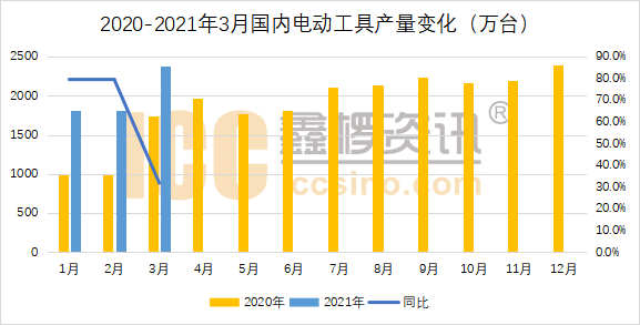 According to the National Bureau of Statistics (NBS), in January-March 2021, the domestic production of electric handheld tools amounted to 60.158 million units, a year-on-year increase of 59%.