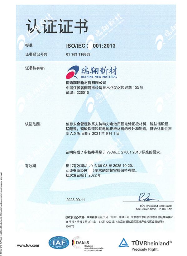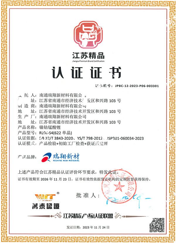 Nantong Reshine New Material Co., Ltd. and Jinchuan Group Co., Ltd. jointly established a precursor joint venture (Lanzhou Kington Energy Storage Power New Materials Co., Ltd.)